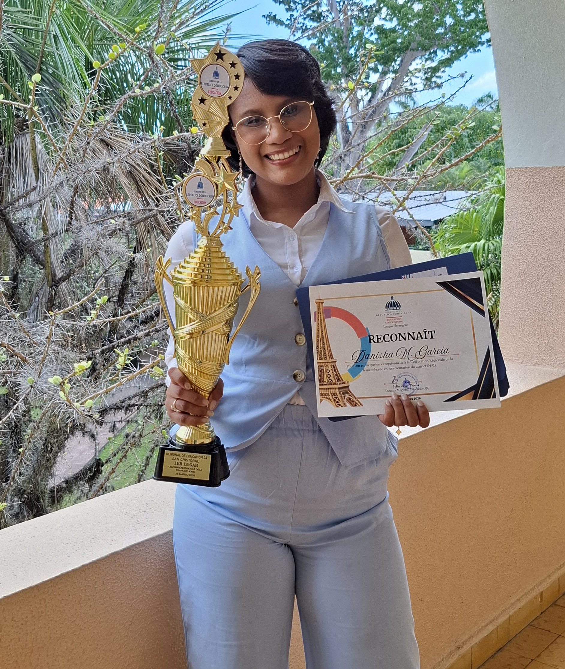 El reconocimiento le fue otorgado el 26 de marzo, durante un acto en el que se destacó el desempeño de los participantes en el dominio del idioma francés. Como parte de su presentación, Danisha interpretó la canción “Voilà”.