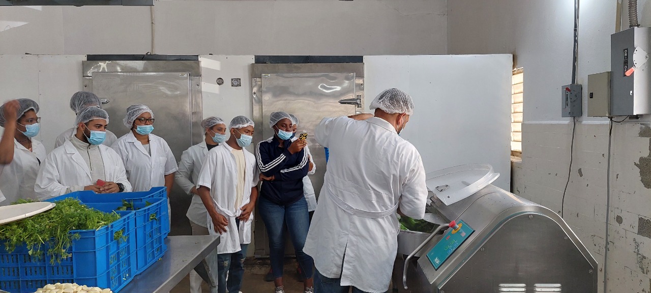 Estudiantes de la carrera Tecnólogo en Procesamiento de Alimentos del Instituto Especializado de Estudios Superiores Loyola (IEESL), visitaron la planta de procesamiento de alimentos de la Universidad ISA (Unisa) en Santiago, el pasado 4 de marzo, como parte del desarrollo práctico de la asignatura Industrias Cárnicas.