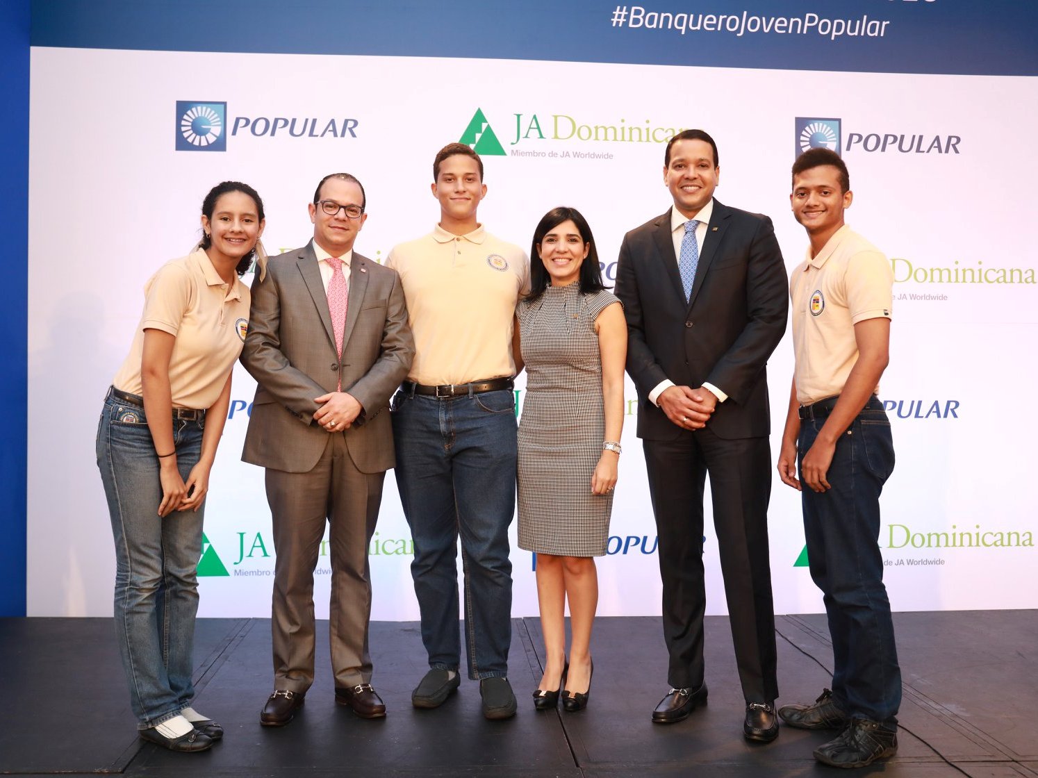 Los estudiantes del Nivel Secundario del Instituto Politécnico Loyola (IPL), Abril Mariv Díaz, Diego Guillén Echavarría y Juan Jesús Herrera, asistieron el pasado jueves 13 al lanzamiento de la quinta edición del programa de educación financiera y emprendimiento Banquero Joven Popular, impulsado por el Banco Popular Dominicano con la colaboración de Junior Achievement Dominicana (JADOM).
